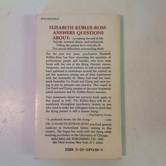 Vintage 1977 Mass Market Paperback Questions On Death and Dying Elizabeth Kubler-Ross