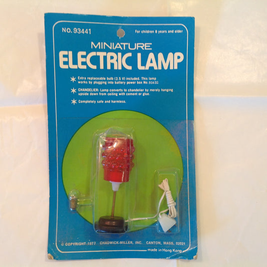 Vintage 1977 NOS Chadwick-Miller Dollhouse Miniature Electric Lamp No. 93441 Red Bubble Shade