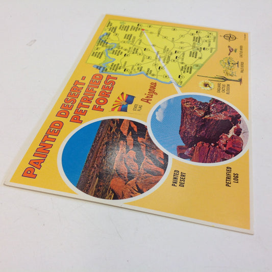 Vintage 1978 Petley Mini Print Souvenir Color Postcard State Map Petrified Logs Petrified Forest Painted Desert Bordering US 66 Arizona