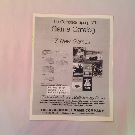 Vintage 1979 The Complete Spring '79 Game Catalog Avalon Hill Game Co Info Sheet MD
