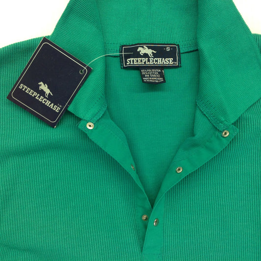 Vintage 1980's Polo Shirt Green White Stripe Steeplechase Short Sleeve Small New With Tags