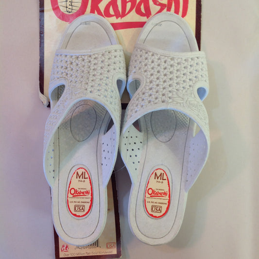 Vintage 1980's Original Okabashi Shoes ML 7 1/2-8 White Rose New with Tags