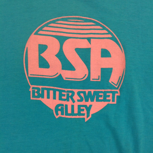 Vintage 1980's Screen Stars Medium Sleeveless T-Shirt Turquoise Pink BSA Bitter Sweet Alley Band