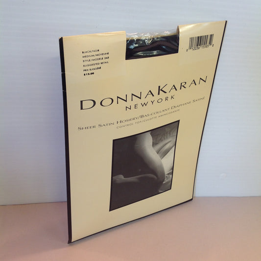 Vintage 1987 NOS Donna Karan New York Hosiery Point d'Esprit Black Medium Style 267