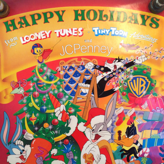 Vintage 1990 Looney Tunes Tiny Toons J C Penney Happy Holidays Color Poster WB90