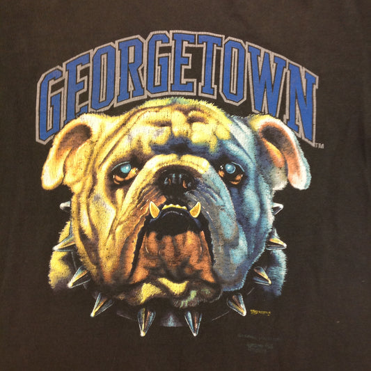 Vintage 1990's Georgetown University Black T-Shirt Large Fruit of the Loom FoTL Bulldog Graphics
