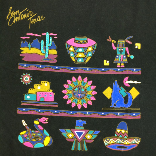 Vintage 1990's Jerzees Preshrunk Cotton Adult Large Short-Sleeve Black Hot Pastel Southwest Graphics San Antonio Texas