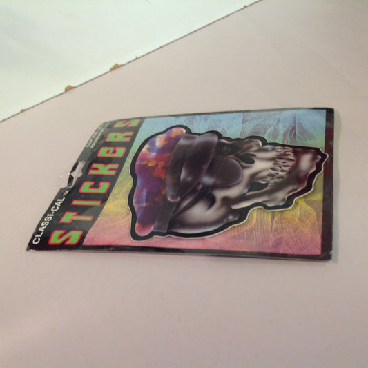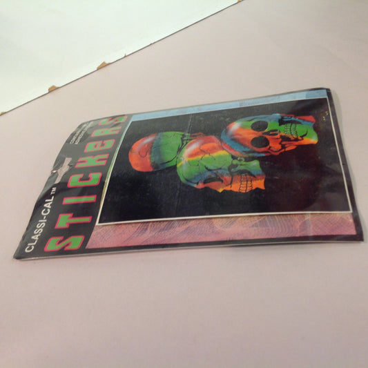 Vintage 1990's NOS Classi-Cal Vinyl Adhesive Sticker Black Mat Rainbow Skull Trio