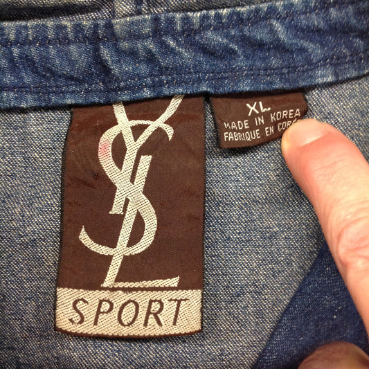 Vintage 1990's YSL Sport Yves Saint Laurent Hooded Blue Denim Jean Jacket Zip Up XL