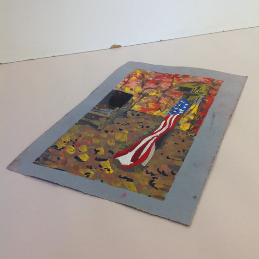 Vintage 1991 Folk Art Surruralism Gouache Painting on Paper "Back Porch" Retlaw
