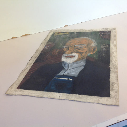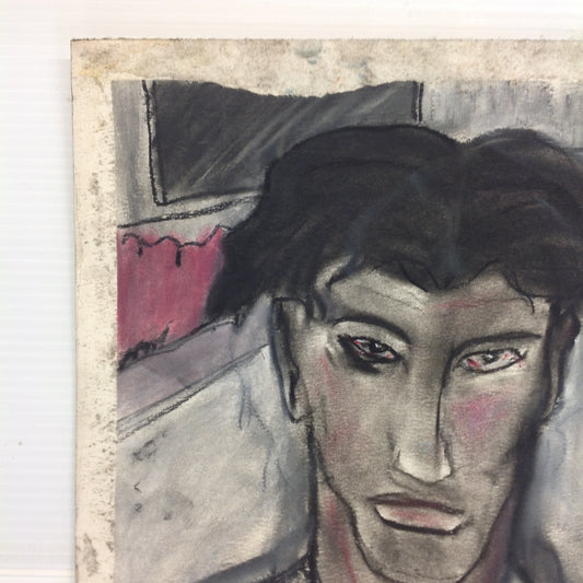 Vintage 1991 Folk Art Surruralism Pastel Drawing on Paper "Portrait of the Artist as an Old Man (in The Waiting Room)"" Retlaw