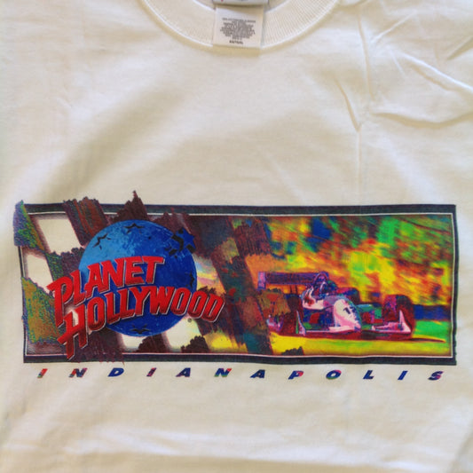 Vintage 1991 Authentic Souvenir White Men's XL Short Sleeve Planet Hollywood Indianapolis T-Shirt