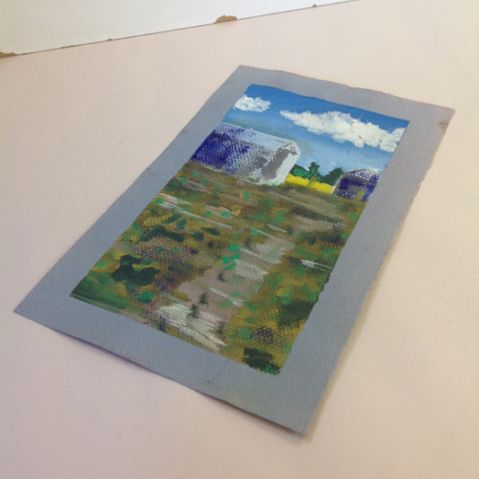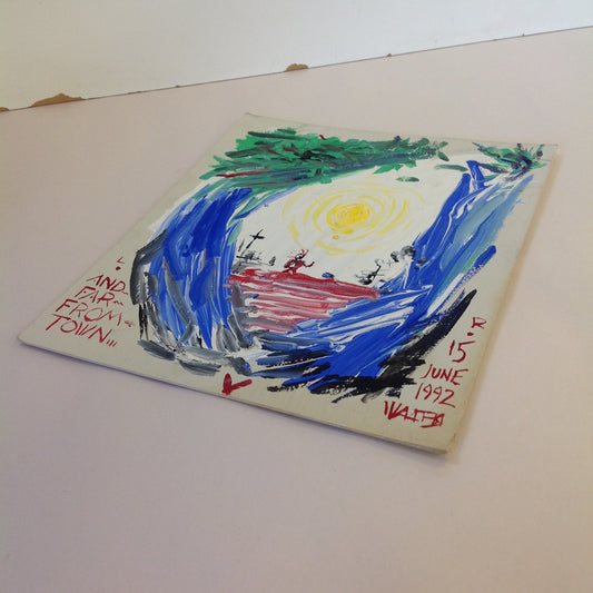 Vintage 1992 Folk Art Surruralism Gouache Painting on Board "And Far From Town..." Retlaw