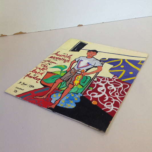 Vintage 1992 Folk Art Surruralism Gouache Painting on Board "Humble Earnings from the Well-Loved Traveler"" Retlaw