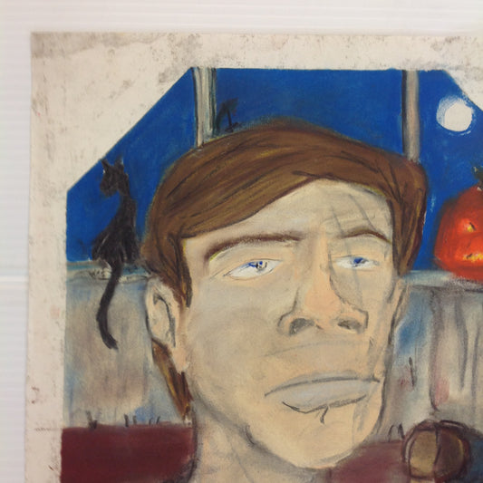 Vintage 1992 Folk Art Surruralism Pastel Drawing on Paper "AllHollow" Retlaw