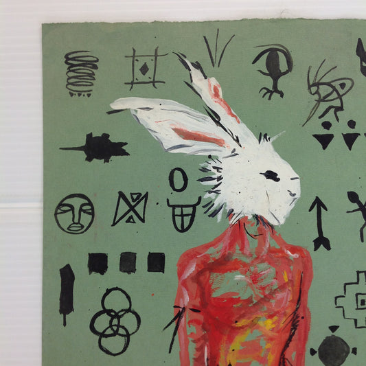 Vintage 1992 Folk Art Surruralism Gouache Painting on Paper "Dudley (Vista de la Sacred Hoop)" Retlaw