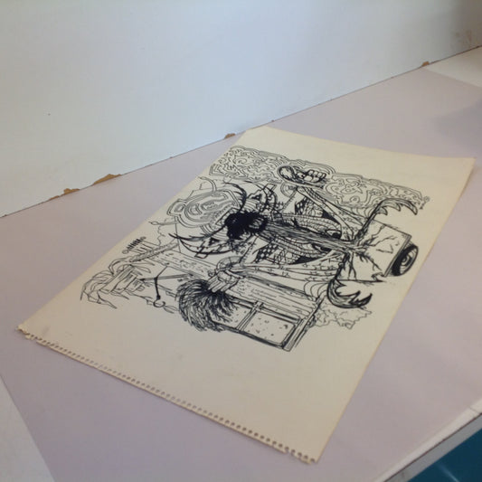 Vintage 1992 Folk Art Surruralism Ink Drawing on Paper "Last Bell" Retlaw