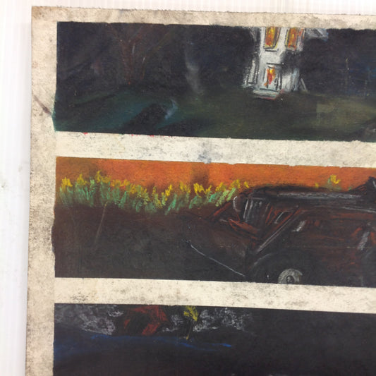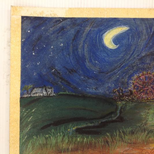 Vintage 1992 Folk Art Surruralism Pastel Drawing on Paper "Ghost Farm" Retlaw