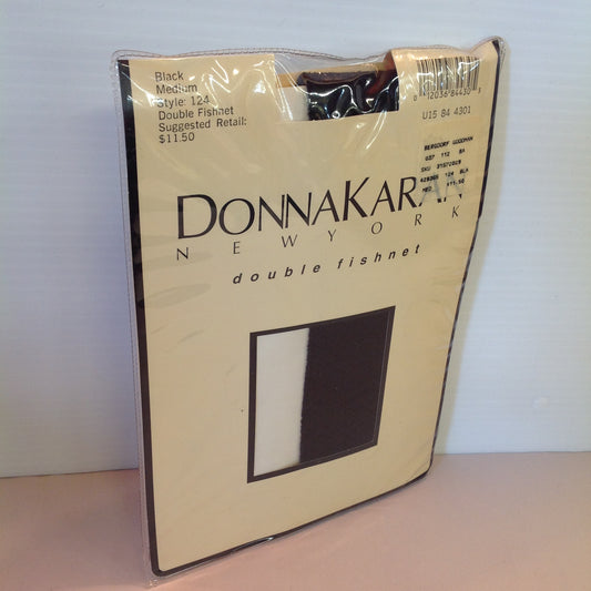 Vintage 1992 NOS Donna Karan New York Hosiery Double Fishnet Black Medium Style 124