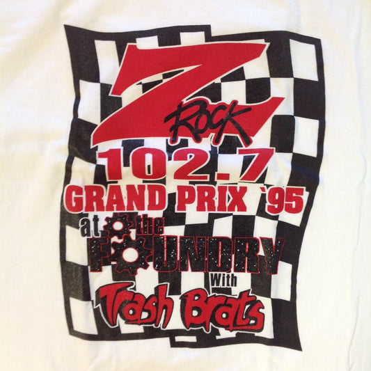 Vintage 1995 ZRock 102.7 Grand Prix 95 at the Foundry with Trash Brats Men's XL White Short Sleeve Souvenir T-Shirt