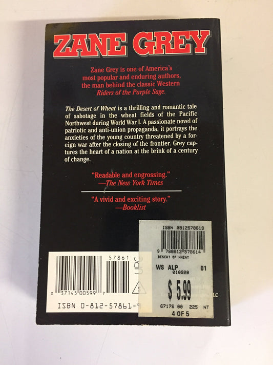 Vintage 2001 Mass Market Paperback The Desert of Wheat Zane Grey Forge Books First Printing