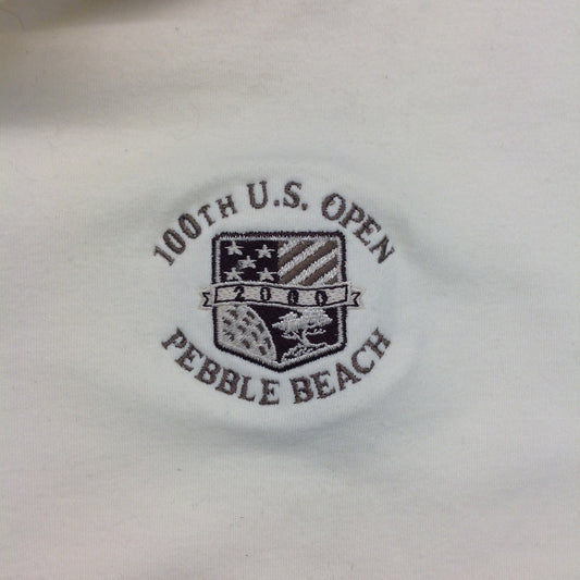 Vintage 2000 Souvenir Tehama by Clint Men's Medium Cream Combed Cotton 100th US Open Golf Tournament Pebble Beach Golf Shirt