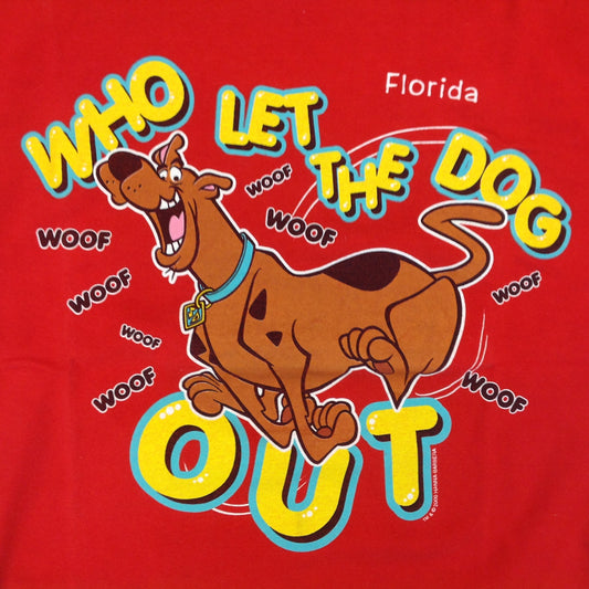 Vintage 2000 Souvenir T-Shirt Florida Scooby-Doo Who Let the Dog Out? Hanna-Barbera Red Small