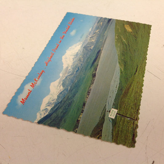 Vintage Alaska Joe Original Plastichrome Scalloped Edged Color Postcard Mount McKinley Muldrow Glacier Highest Point in the United States Anchorage Alaska