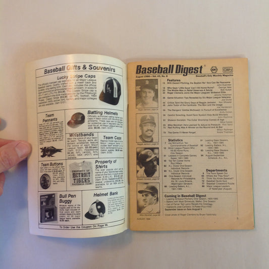 Vintage August 1986 Baseball Digest Magazine The Red Sox: Fearsome When 'Armed'