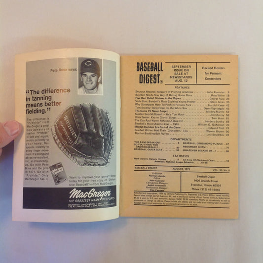 Vintage August 1971 Baseball Digest Magazine Vida Blue -- Baseball's Most Exciting Young Pitcher