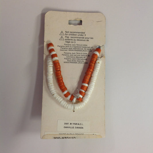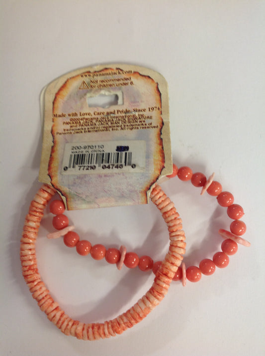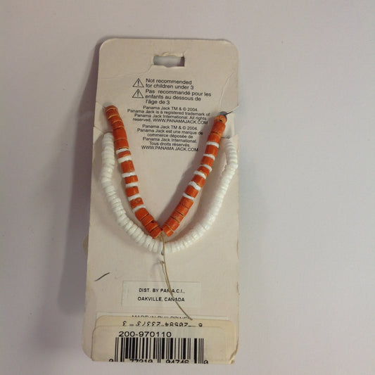 Vintage Authentic Panama Jack Duo Ankle Bracelet in Orange Red & Pink Beads with Shell