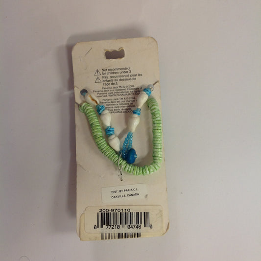 Vintage Authentic Panama Jack Duo Ankle Bracelet in Blue and Green Beads with White Shell