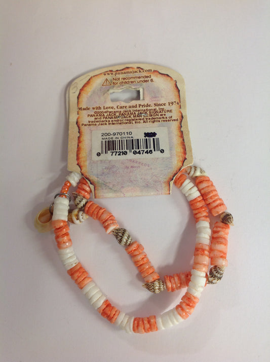 Vintage Authentic Panama Jack Duo Ankle Bracelet in Salmon and White Beads with Shell Accent