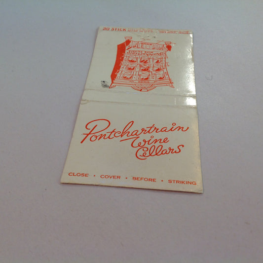 Vintage Matchbook Cover Pontchartrain Wine Cellars West Larned Detroit Michigan MI