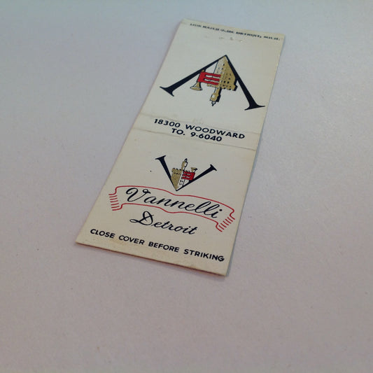 Vintage Matchbook Cover Vanelli Restaurant Detroit Michigan Woodward Horseshoe Bar