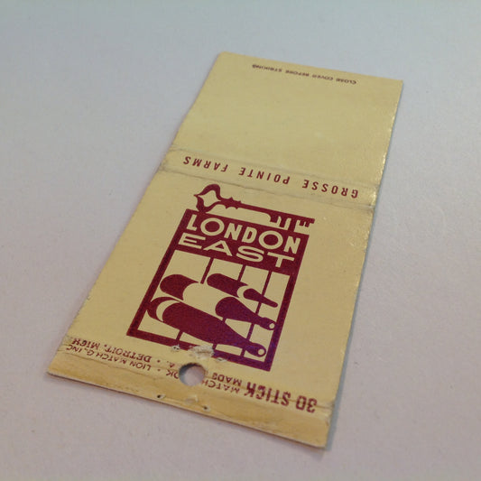 Vintage Matchbook Cover London East Chop House Grosse Pointe Farms Michigan MI
