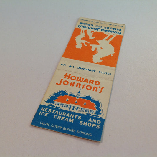 Vintage Matchbook Cover Howard Johnson's Restaurants and Ice Cream Shops Famous HoJo
