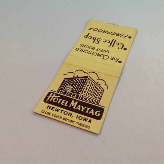 Vintage Matchbook Cover Maytag Hotel Newton Iowa Coffee Shop AC Guest Rooms IA