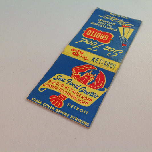 Vintage Matchbook Cover Sea Food Grotto Detroit's Exclusive Restaurant Telegraph Rd.
