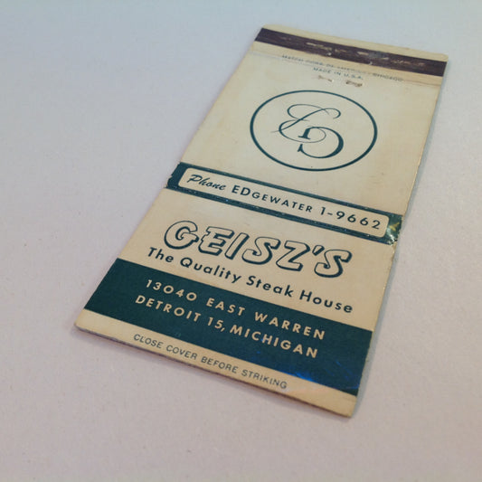 Vintage Matchbook Cover Geisz's Lenox Room Quality Steakhouse Detroit Michigan