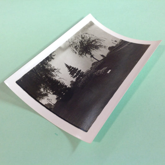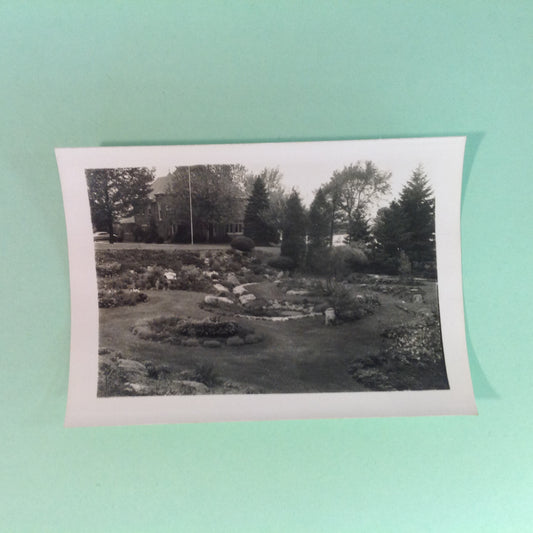 Vintage Mid Century B&W Photo Holland Michigan Tulip Festival Flower Garden with Pines and Weeping Willow