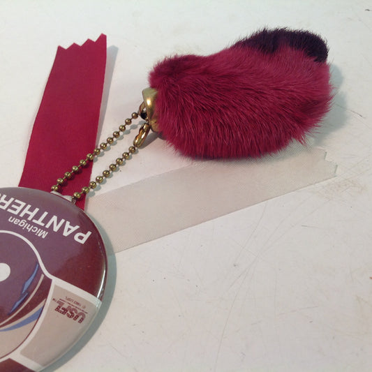 Vintage Michigan Panthers USFL Football Team Pinback with Ribbon and Maroon Rabbit Foot Flair
