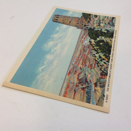 Vintage Mid Century Fred Harvey Color Postcard Watchtower at Desert View Grand Canyon National Park Arizona