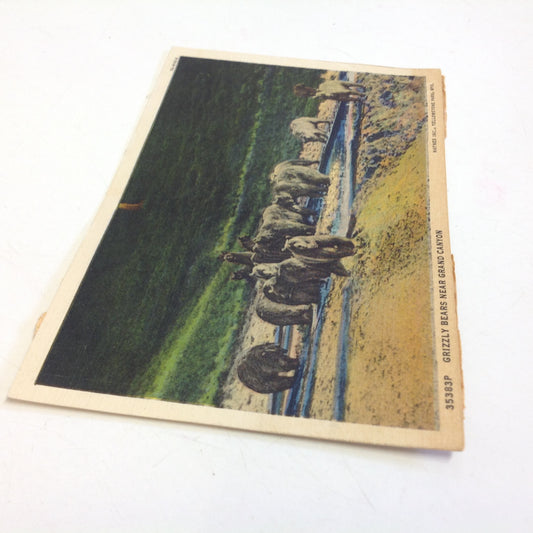 Vintage Mid Century Haynes Inc Curteich Color Postcard Grizzly Bears Near Otter Creek Grand Canyon National Park Arizona
