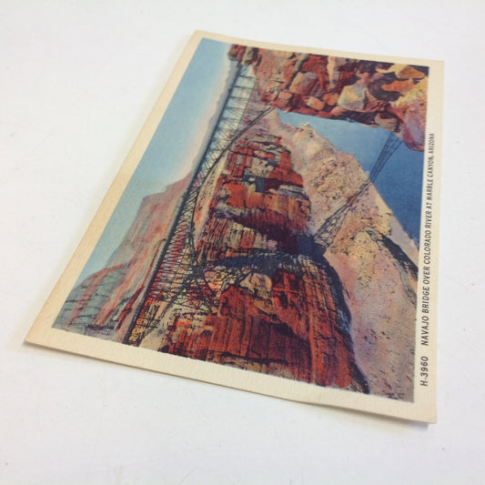 Vintage Mid Century Fred Harvey Souvenir Color Postcard Navajo Bridge Over Colorado River at Marble Canyon Arizona