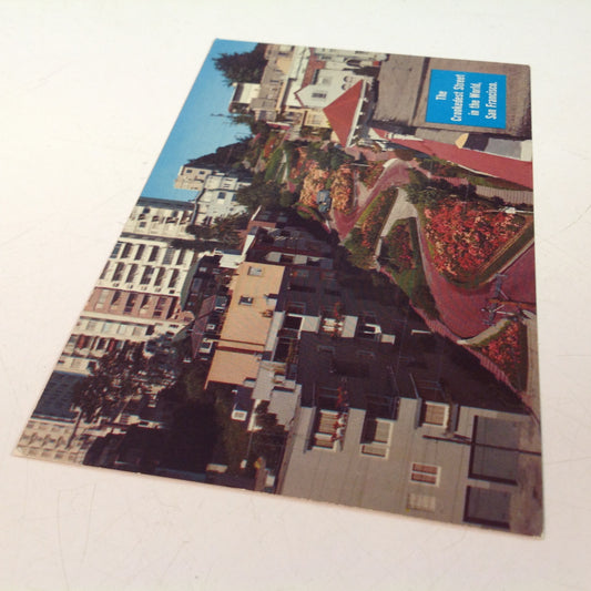 Vintage Mid Century H S Crocker Souvenir Color Postcard Lombard Street Crookedest Street Overhead View San Francisco California