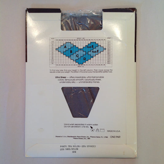 Vintage NOS 1985 Hanes Ultra Sheer Pantyhose Tummy Control Sandalfoot Clear Grey Size B