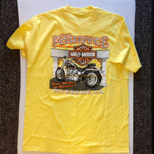 Vintage Official Skip Fordyce Riverside California Harley Davidson XL (46-48) Yellow Cotton T-Shirt