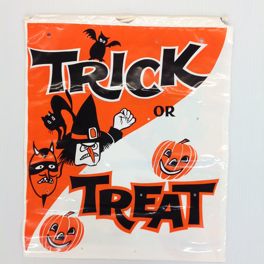 Vintage Plastic Halloween Trick-Or-Treat Goodies Bag Witch Devil Bat Cat Jack O'Lantern