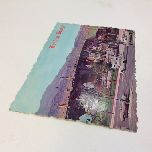 Vintage Petley Studios Souvenir Scalloped Edge Kolor View Color Postcard JV McLaughlin Photo Roadside View London Bridge and English Village Lake Havasu City Arizona